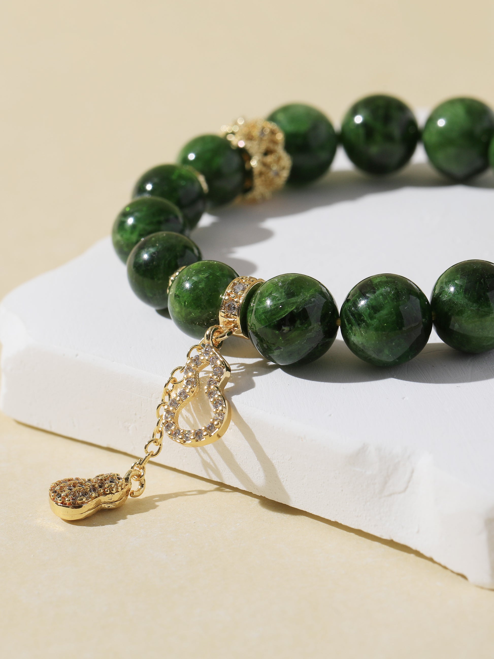 Diopside Bracelet with Gourd Charm