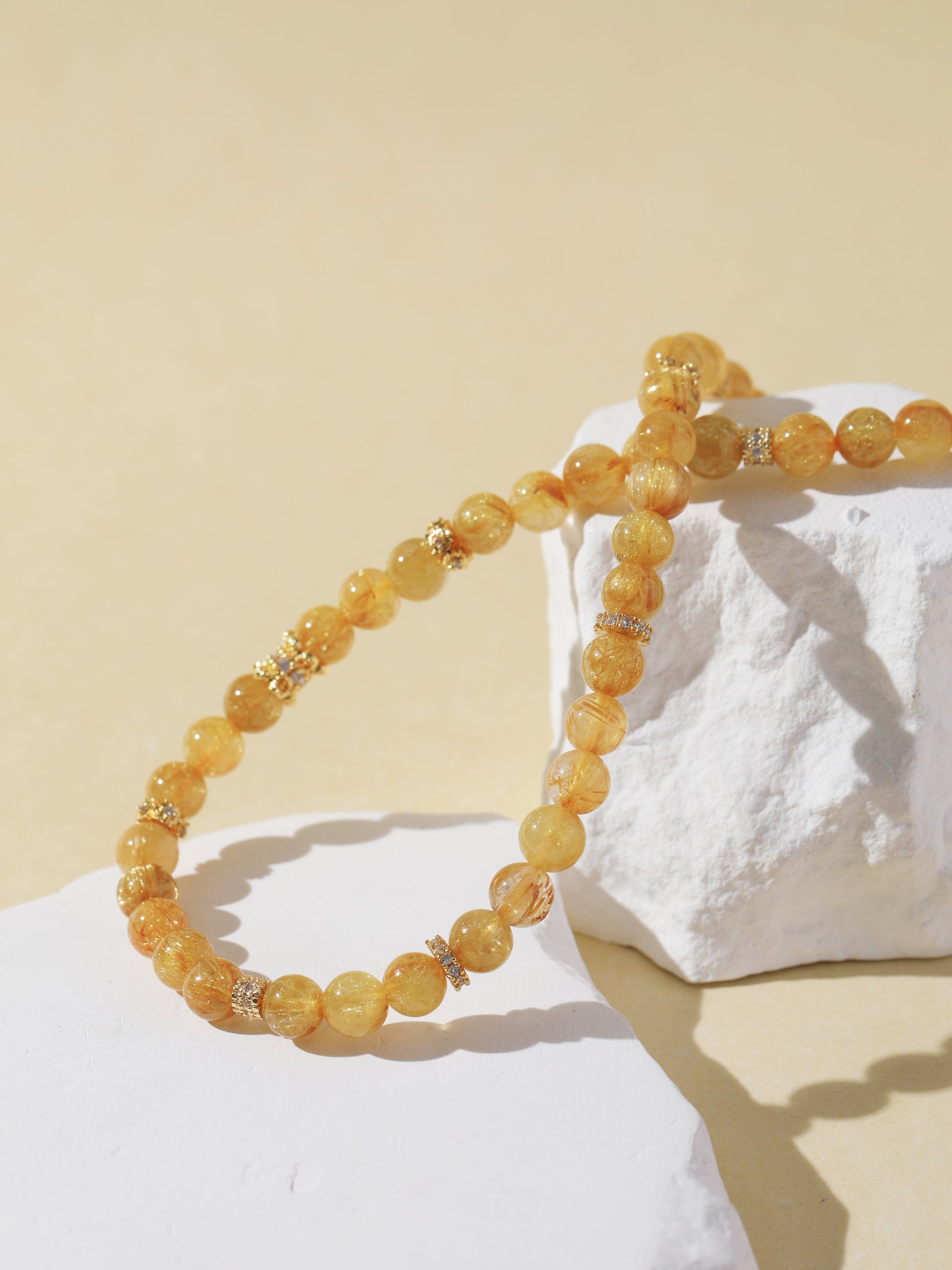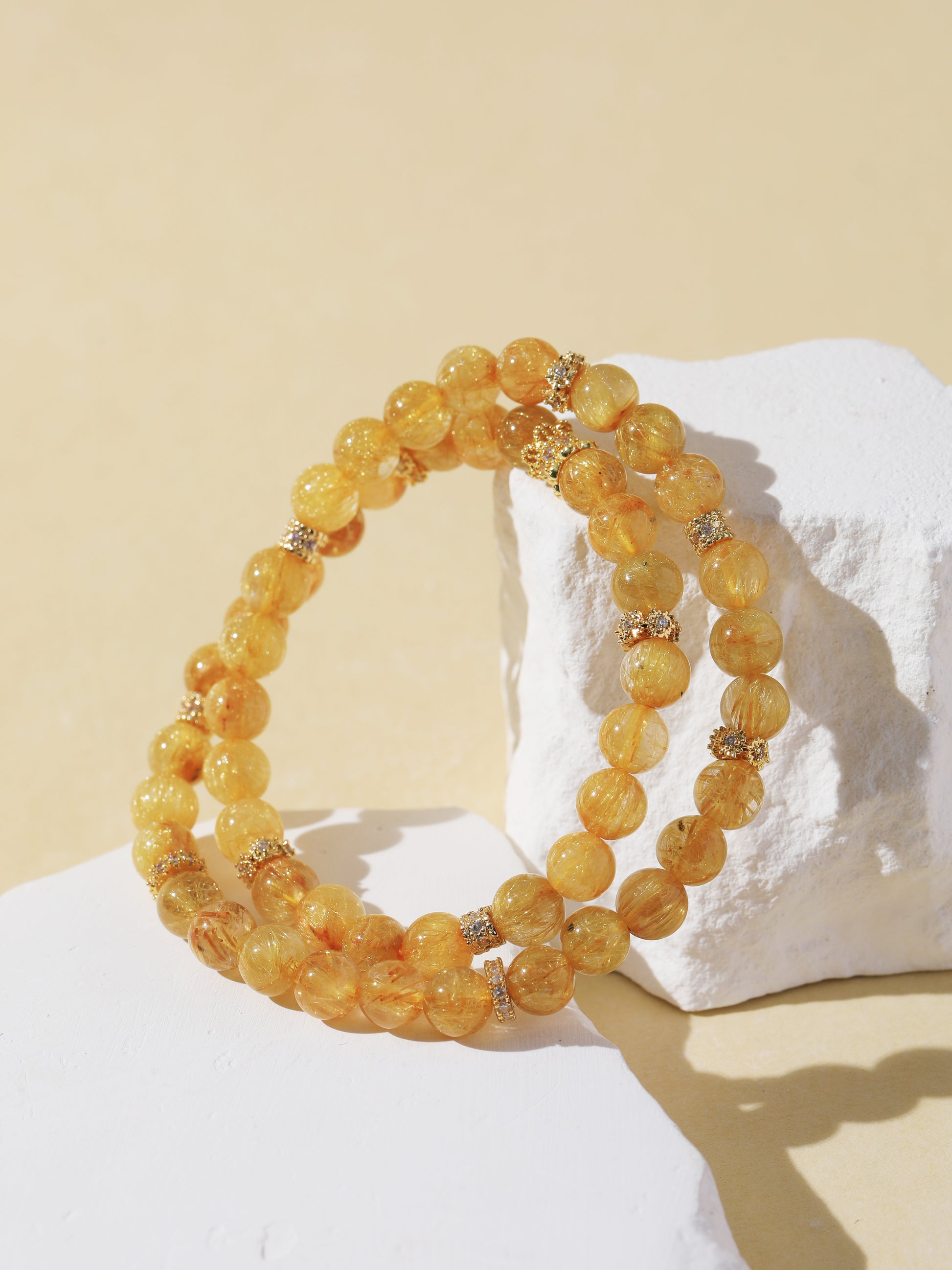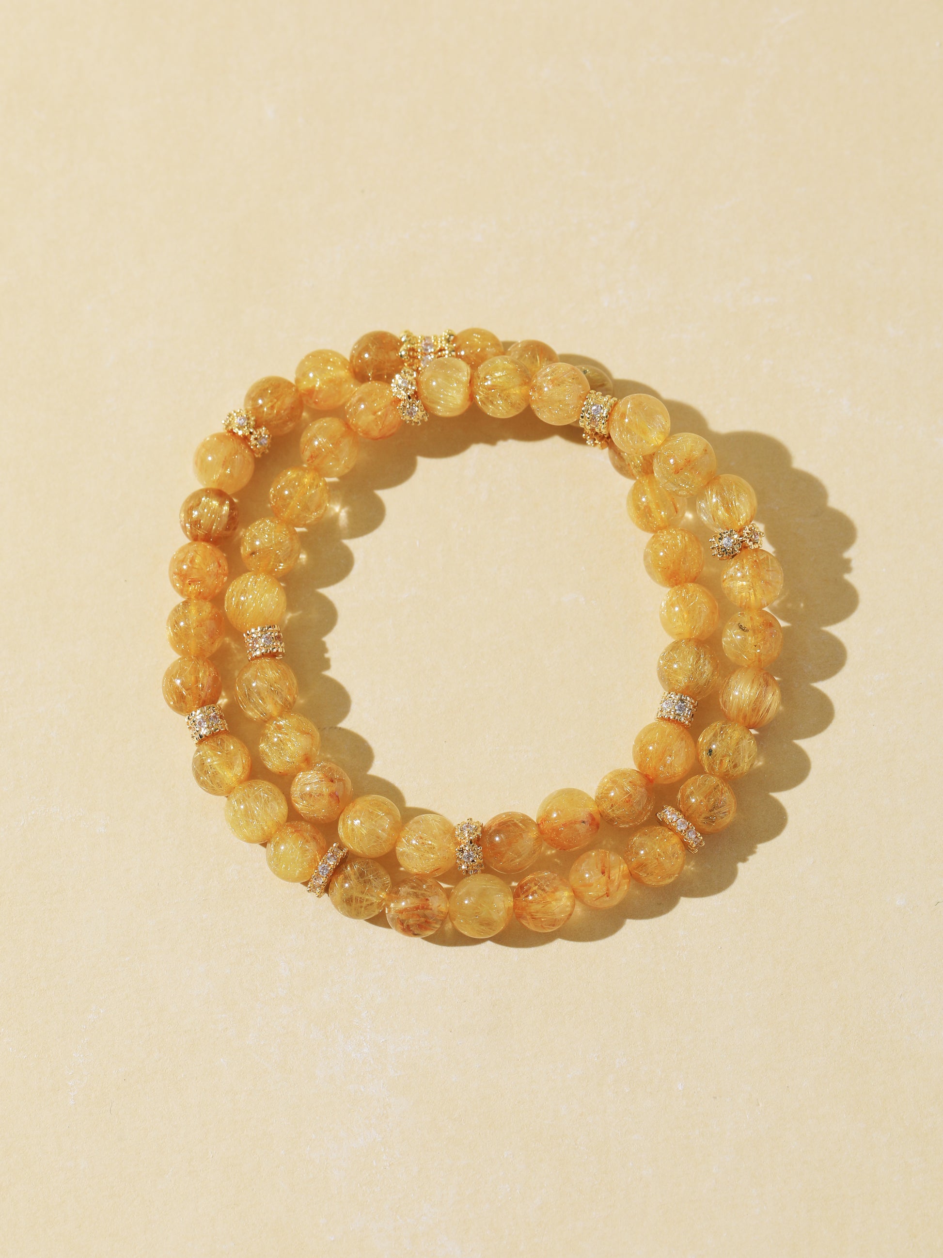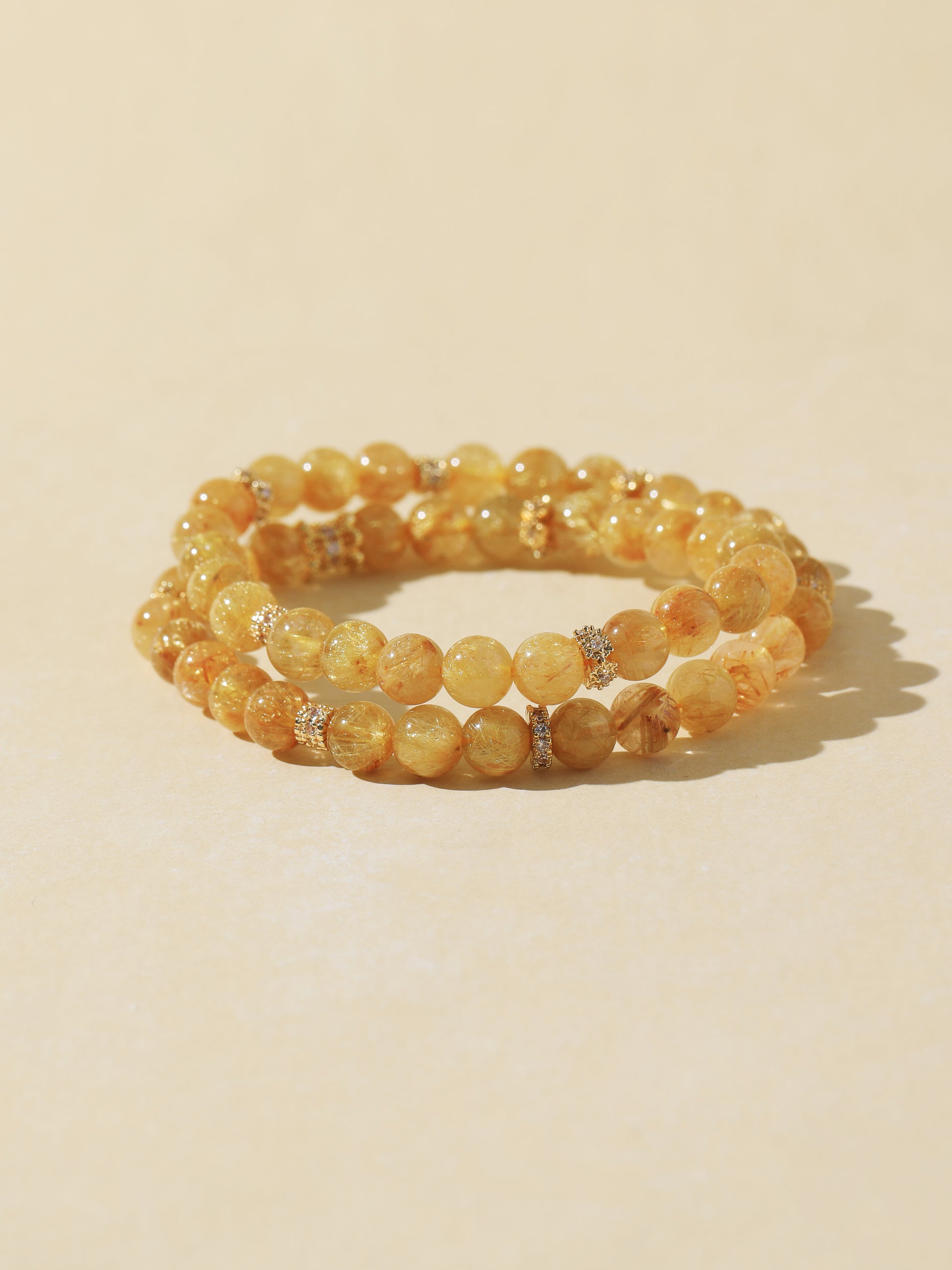 Golden Rutilated Quartz, known as the “Stone of Wealth,” activates inner energy and attracts abundance. It enhances confidence, clarity, and decisive action—making it a powerful ally in Period 9’s fiery momentum. Crafted with 6mm natural Golden Rutilated Quartz beads, this piece features luminous golden threads within each crystal —— Wear it as a bracelet or a necklace.