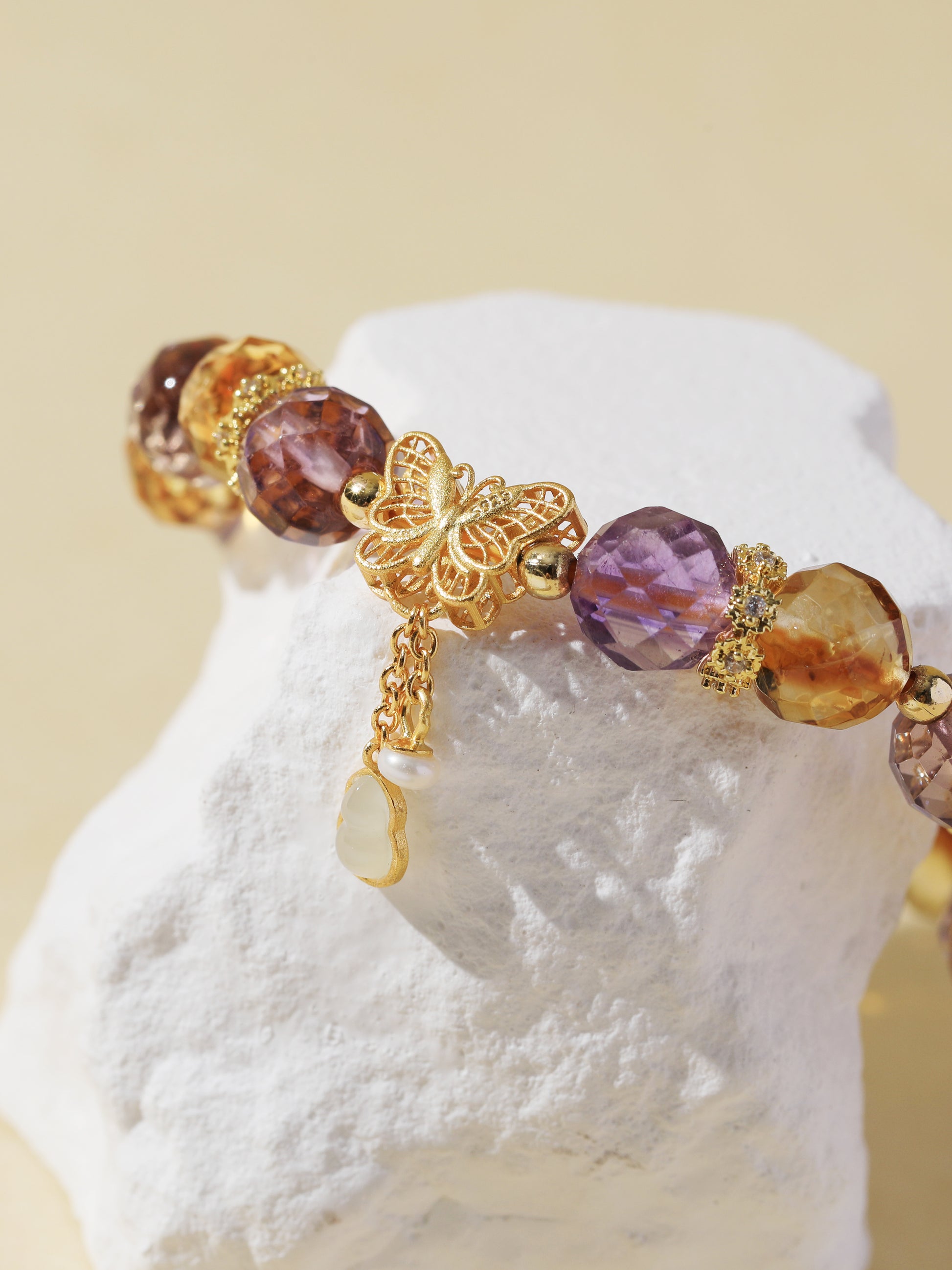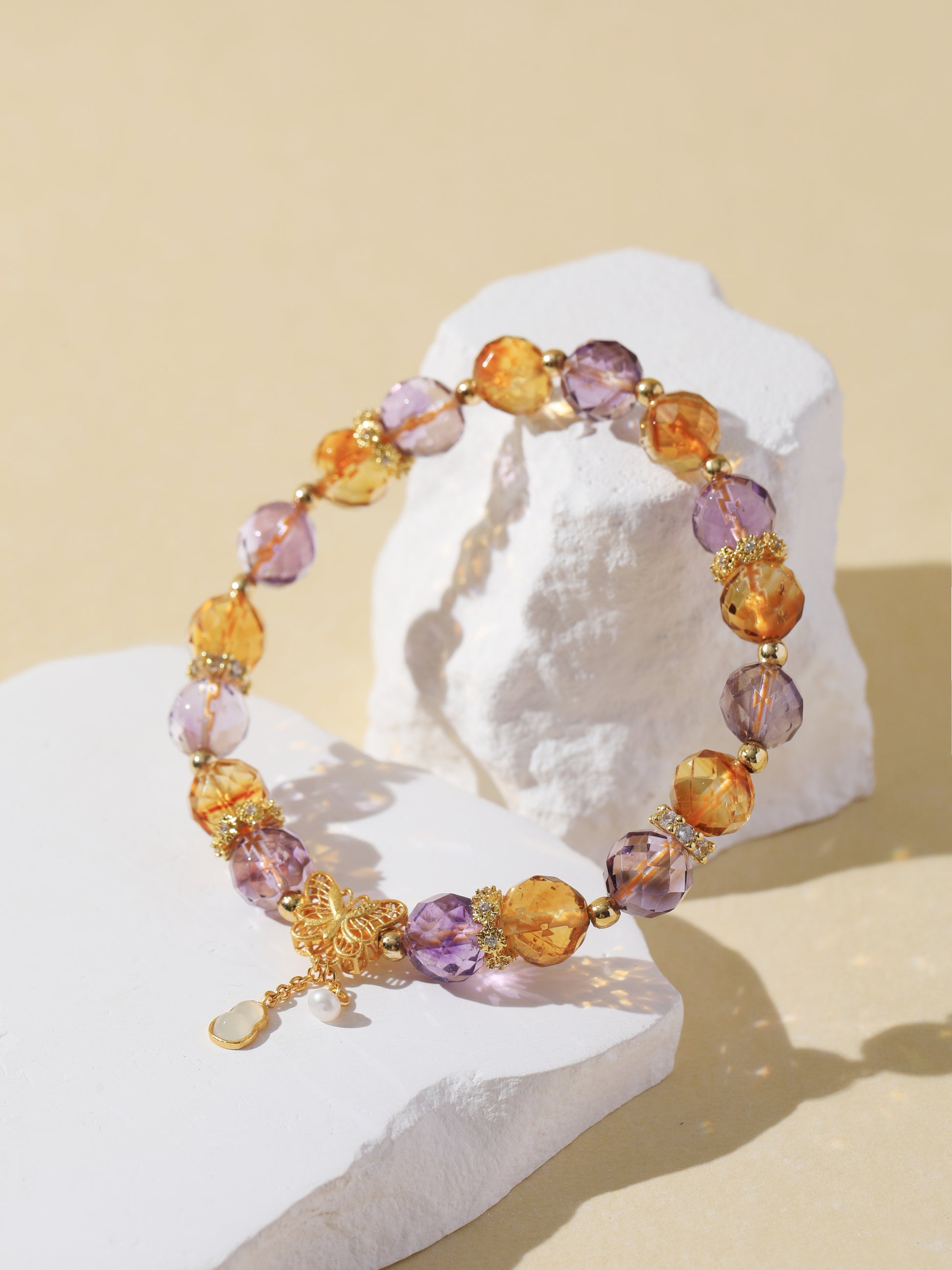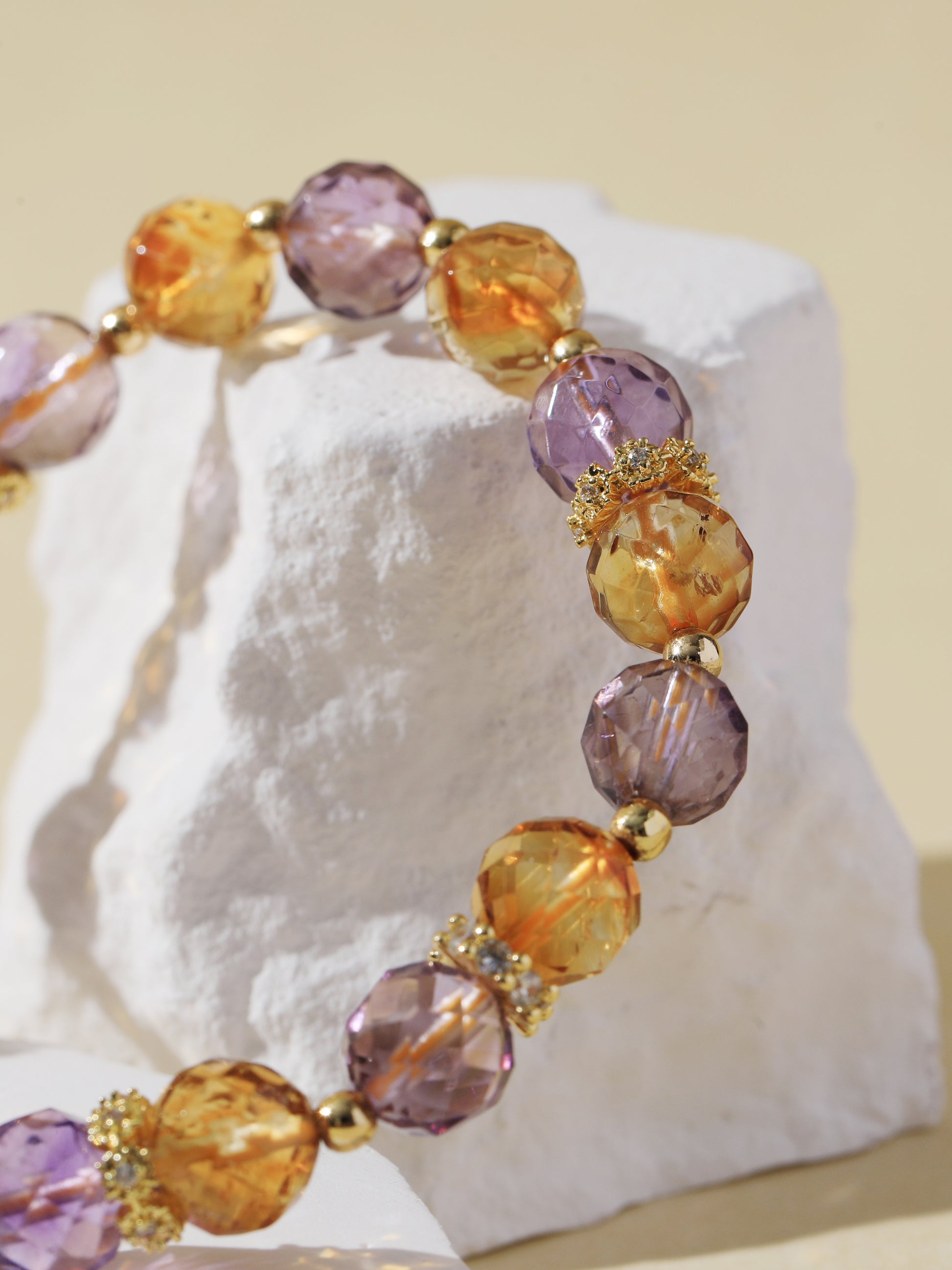 Amethyst channels inner peace and emotional clarity, while Citrine radiates abundance and confidence—together creating a harmonious balance of calm and optimism. Crafted with faceted stones that sparkle with every movement, this bracelet is lightweight, elegant, and full of quiet brilliance.