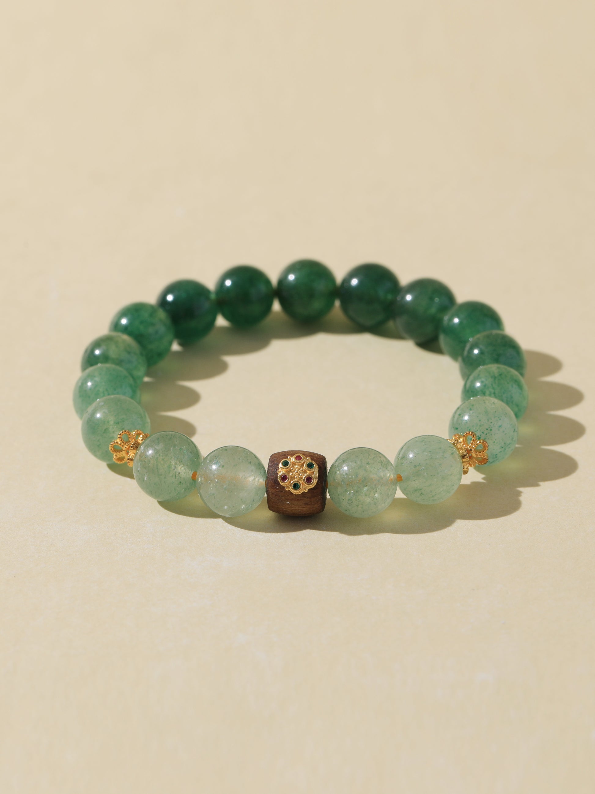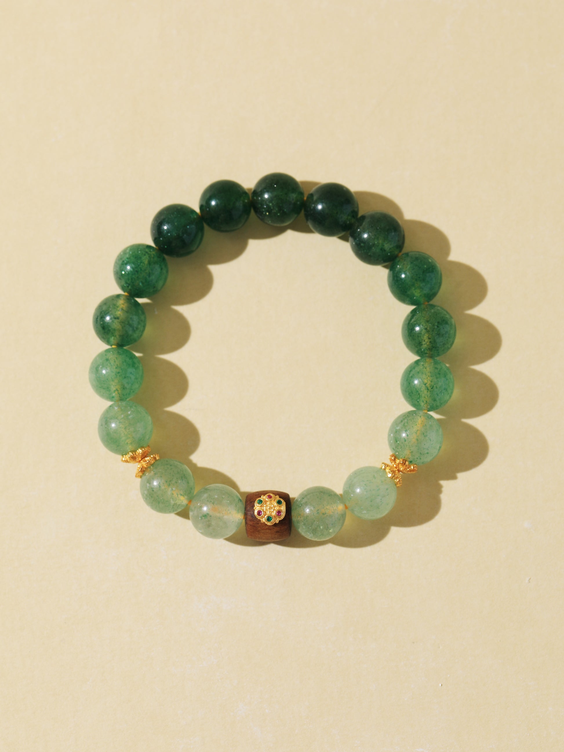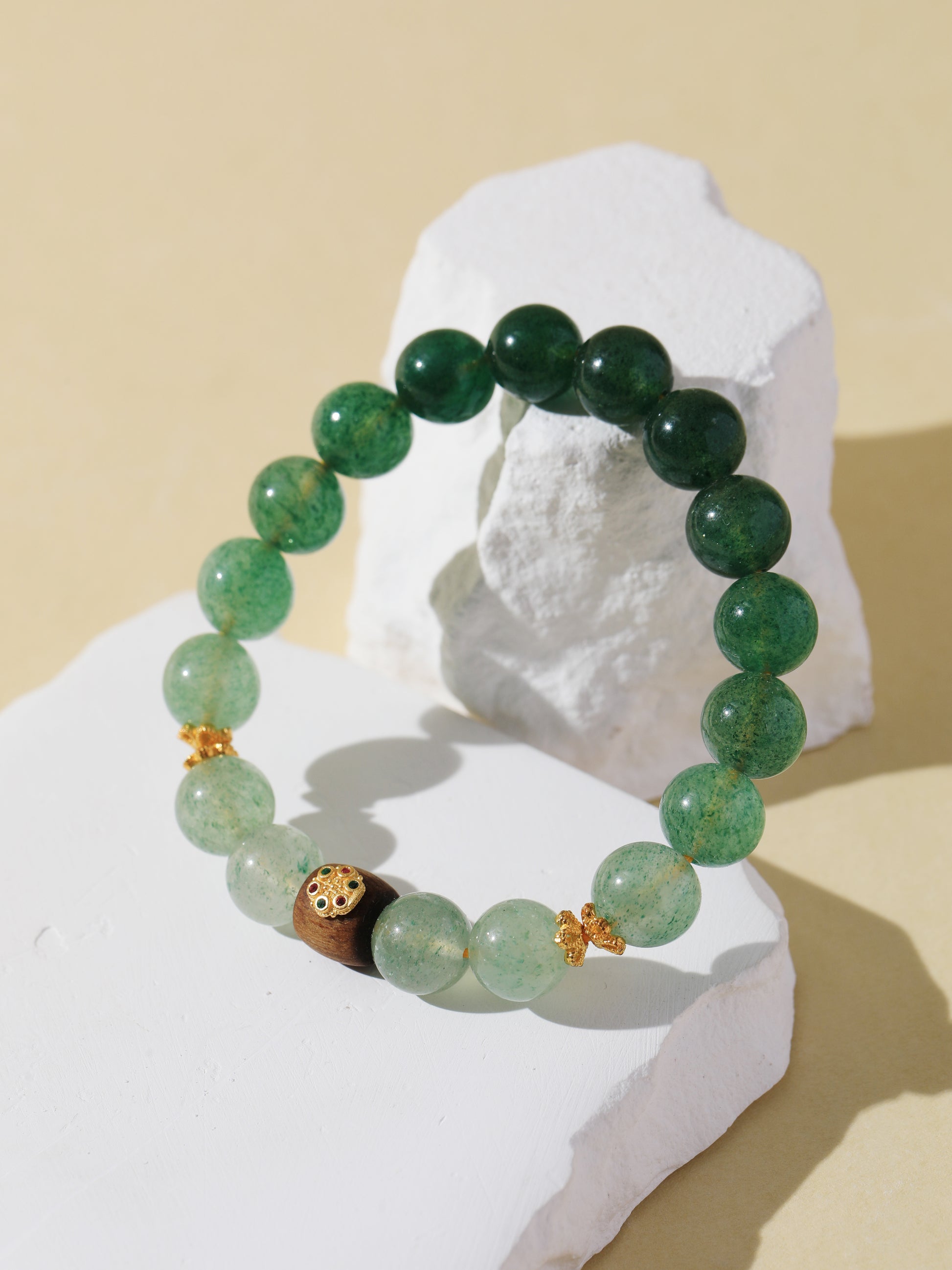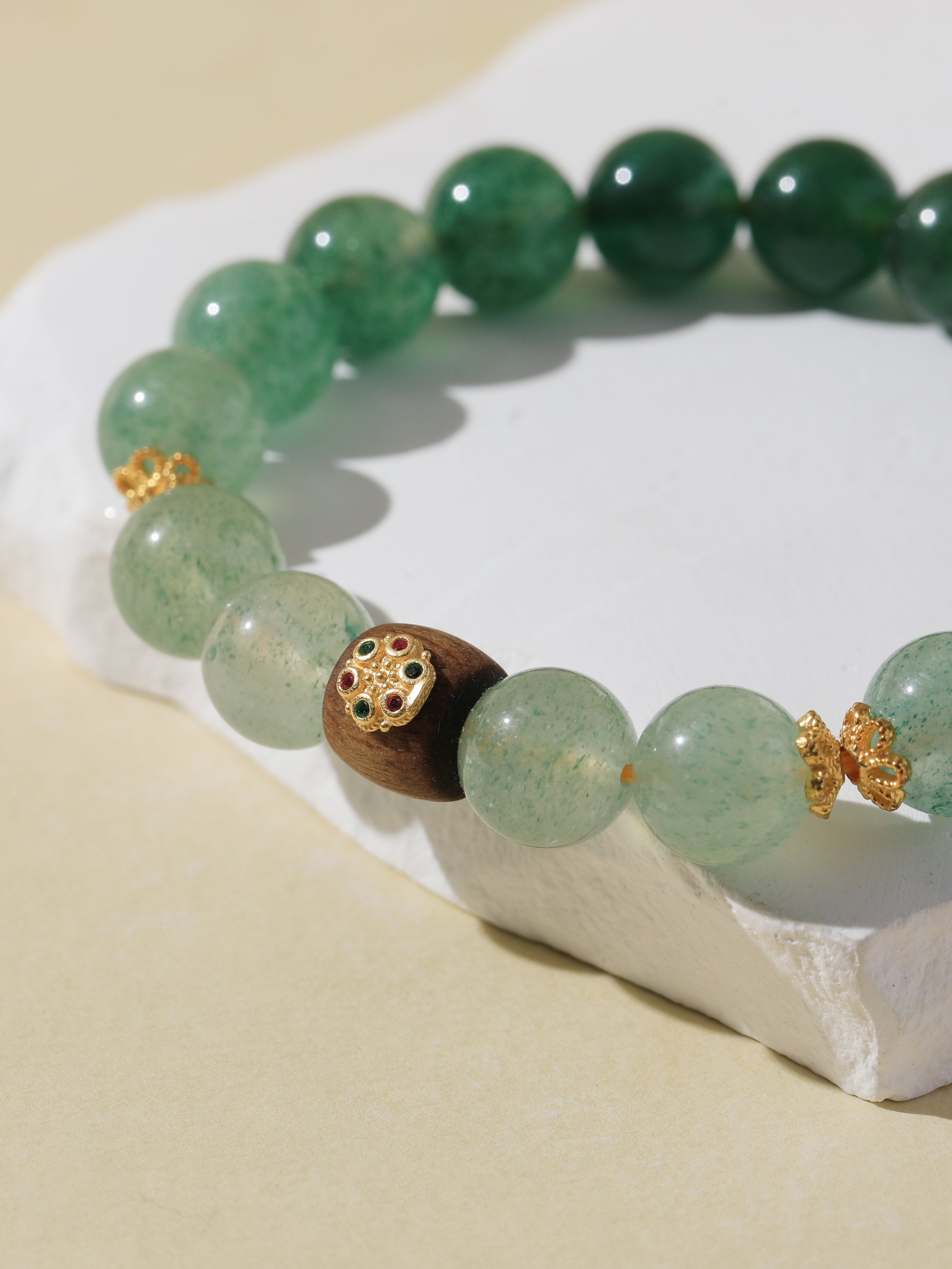 Gradient Green Quartz Bracelet with Agarwood