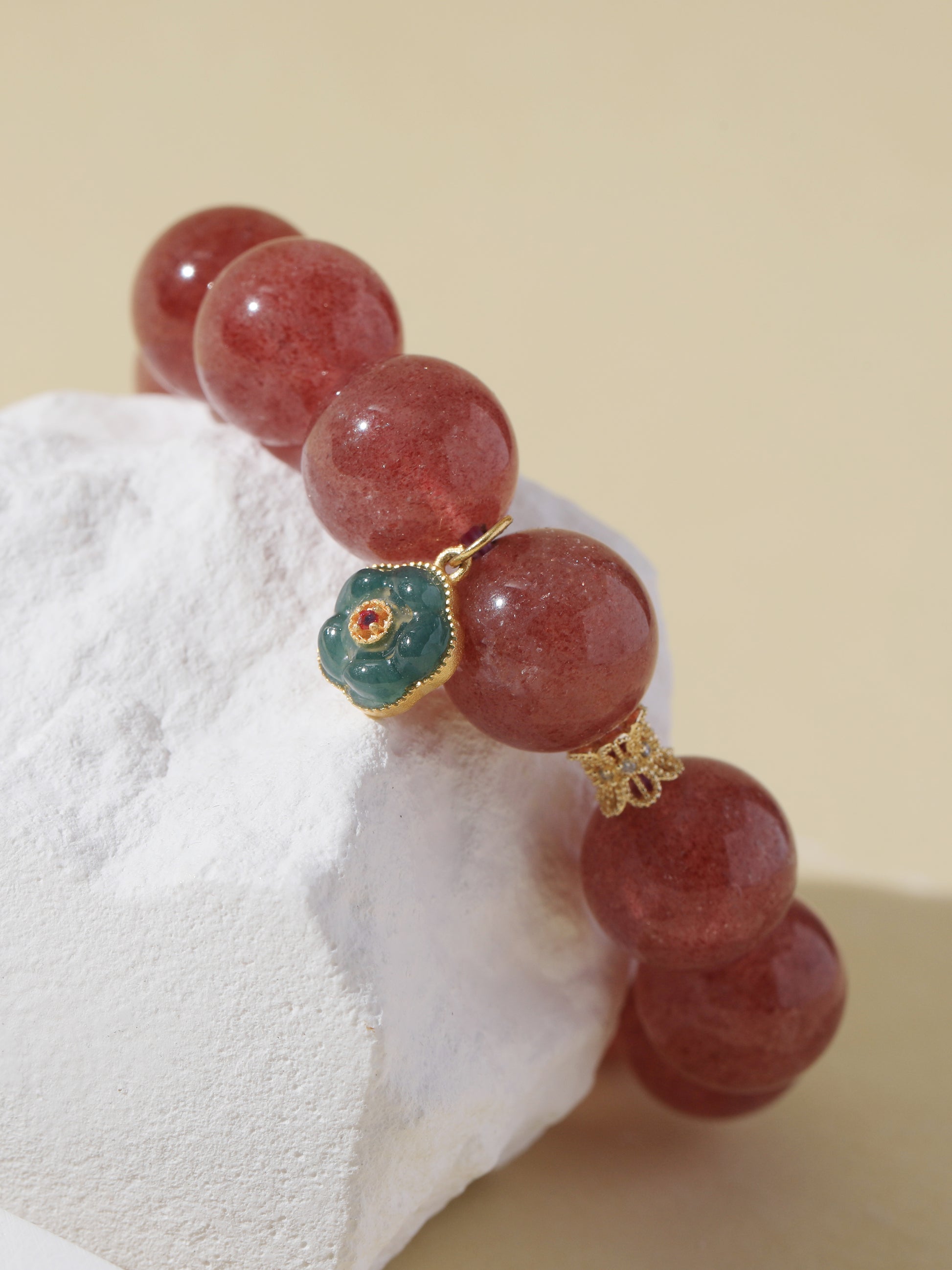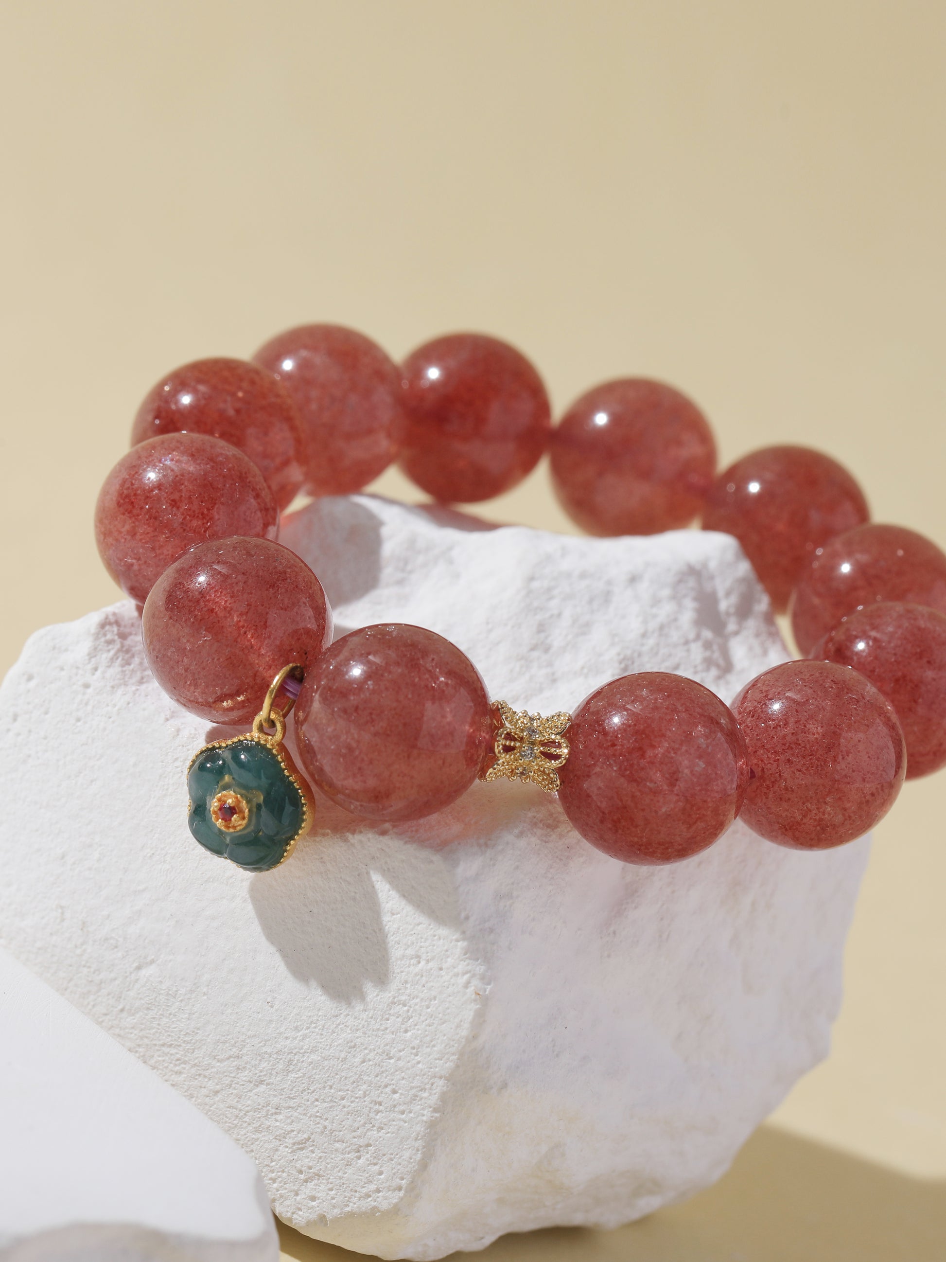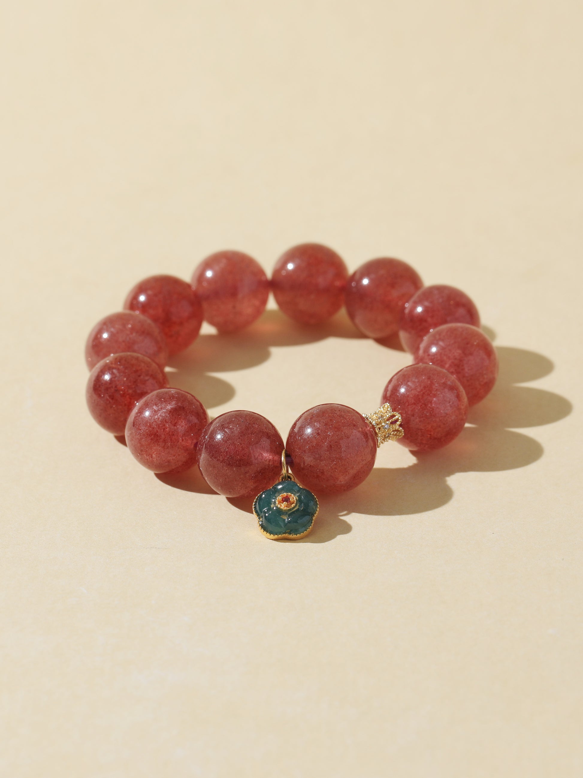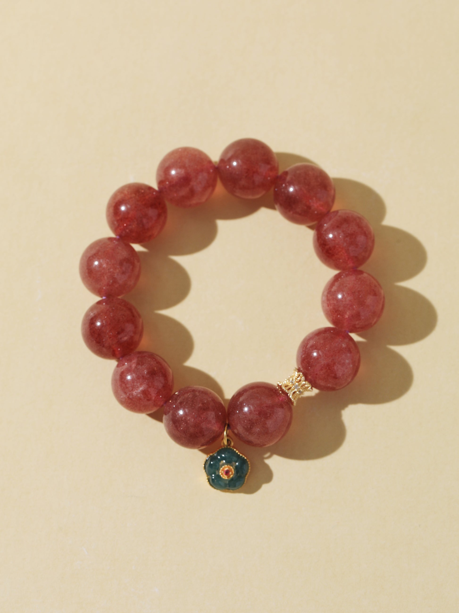 Strawberry Quartz Bracelet with Tourmaline Flower