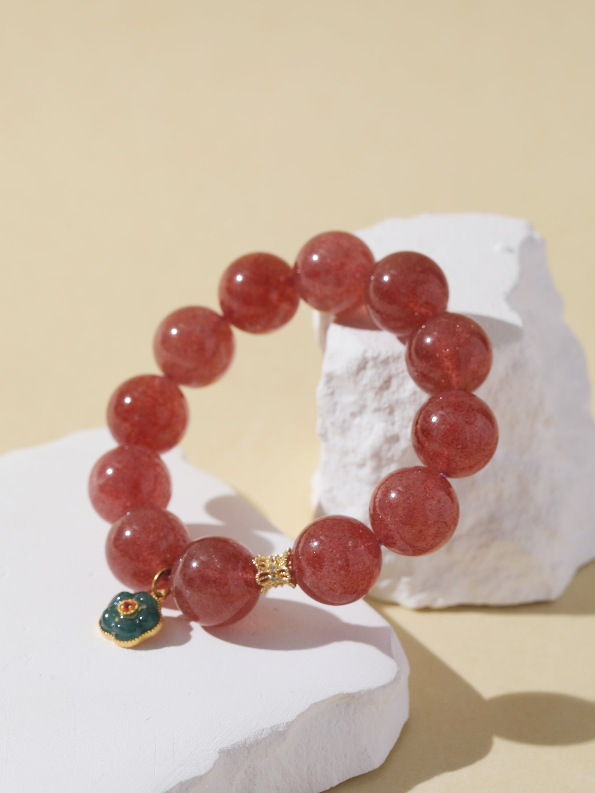 Strawberry Quartz is cherished as a "love magnet"—enhancing personal charm, lifting the spirit, and attracting kind, meaningful connections. It resonates strongly with the heart chakra, gently opening one’s energy to joy, warmth, and affection. Vibrant yet soft in energy, the design radiates sweetness, confidence, and feminine elegance.